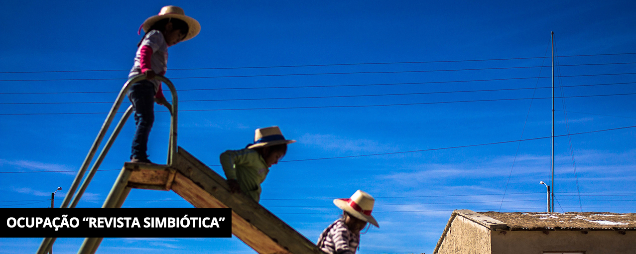 Crédito foto da chamada: Alpaca Producciones. | Conta com tarja preta, no canto inferior esquerdo, escrito OCUPAÇÃO "REVISTA SIMBIÓTICA" em branco.