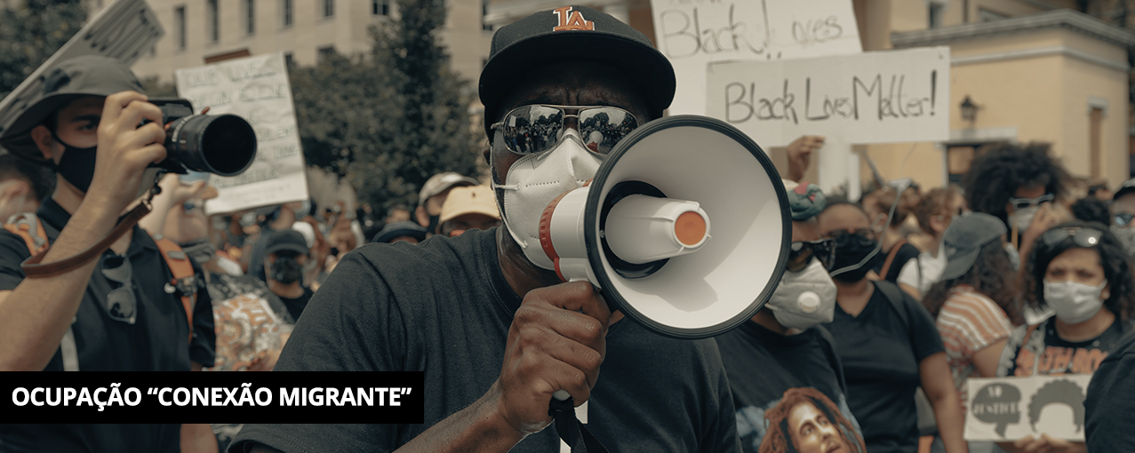 Foto da chamada: Clay Banks. | Conta com tarja preta, no canto inferior esquerdo, escrito Ocupação "Conexão Migrante" em branco.