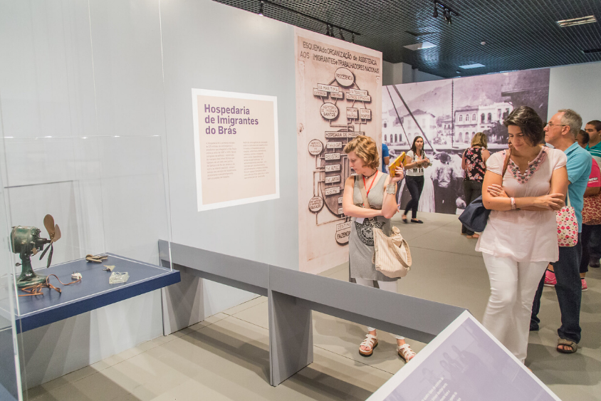 Depois de uma temporada na cidade de Santos, a exposição chegou à capital paulista retratando o cotidiano dos imigrantes, desde o desembarque no Brasil pelo Porto de Santos - principal porta de entrada do país -, passando pela Hospedaria de Imigrantes do Brás e, finalizando, com a vida nas lavouras. A curadoria abordou ainda o dia a dia desses imigrantes, com seus costumes característicos que tanto influenciaram a diversidade cultural brasileira.